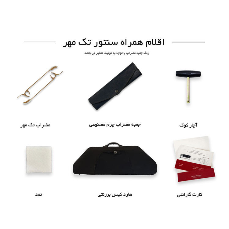 اقلام همراه: مضراب تک مهر جعبه مضراب چرم مصنوعی هاردکیس برزنتی وآچار کوک